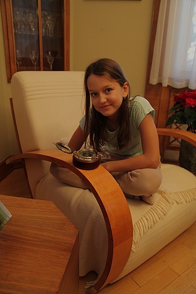 AI se na okamžik odmlčelo. "Jen ty dvě růžové sponky ve vlasech."