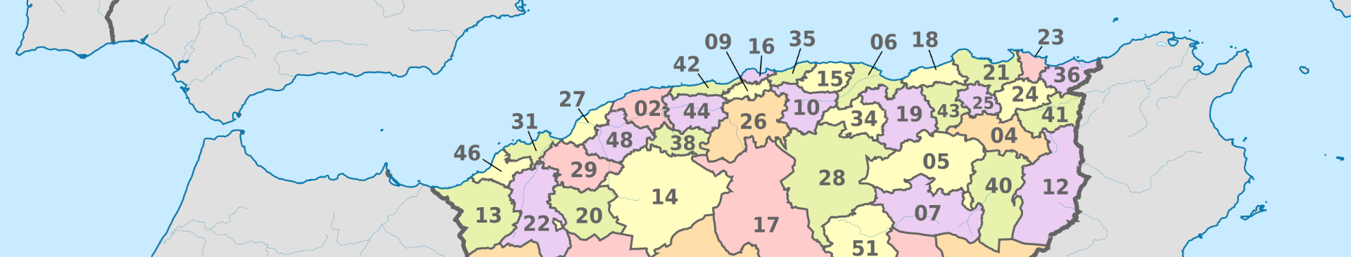Alžírsko má 58 provincií, ale protože majáky jsou jen v provinciích u Středozemního moře, vytvořila Thea seznam majáků rozdělených do těchto provincií.